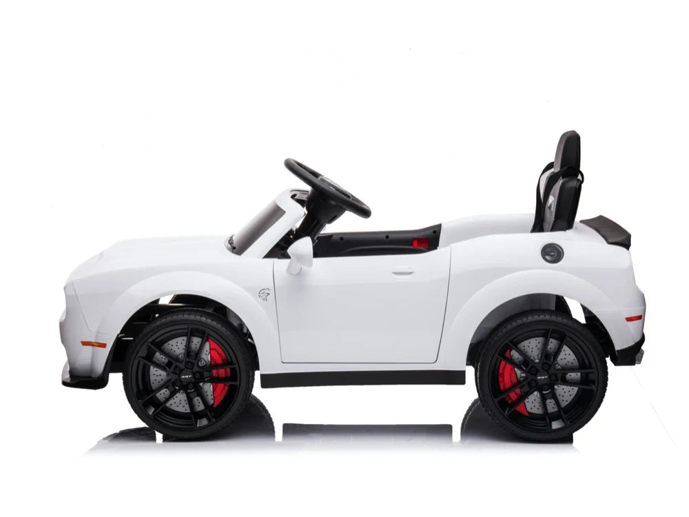 Dankzij de krachtige 12V 4,5Ah accu en twee 12V motoren – één op elk achterwiel – biedt de Dodge Challenger SRT een indrukwekkend rijvermogen. Met drie instelbare snelheden tot 5 km/u en een ‘soft start’-functie trekt de auto soepel op, wat zorgt voor een veilige en gecontroleerde rit. De kleine bestuurder kan zowel vooruit als achteruit rijden met het gaspedaal, terwijl ouders volledige controle kunnen behouden via de meegeleverde afstandsbediening.