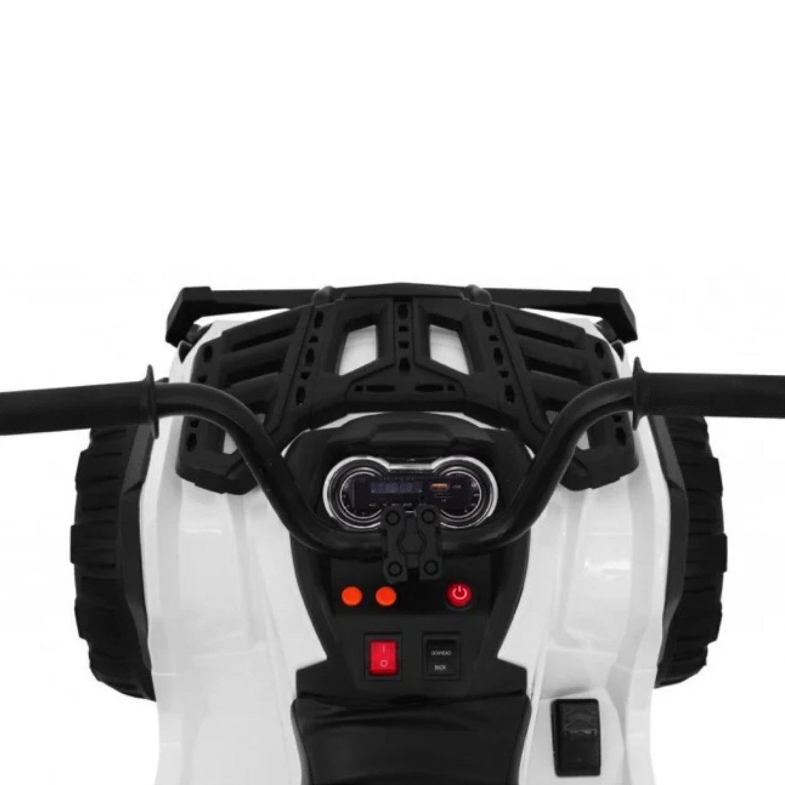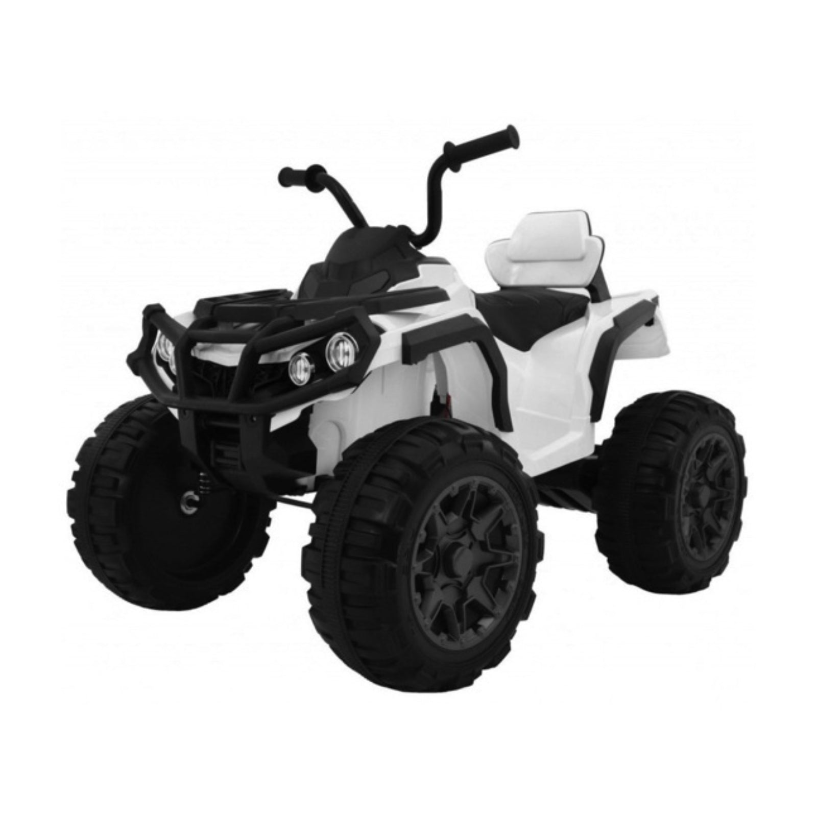 De quad is uitgerust met een krachtige 12V accu en twee 12V motoren, waarmee hij een snelheid van 3 tot 6 km/u kan bereiken. Dankzij de geveerde wielen en de volledig rubberen banden rijdt hij soepel en stabiel op diverse ondergronden.